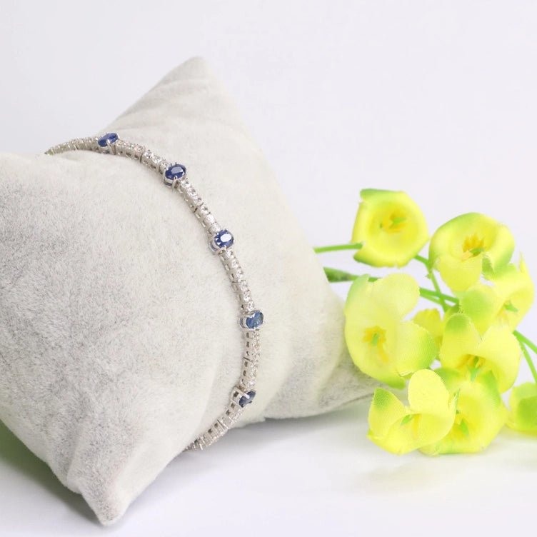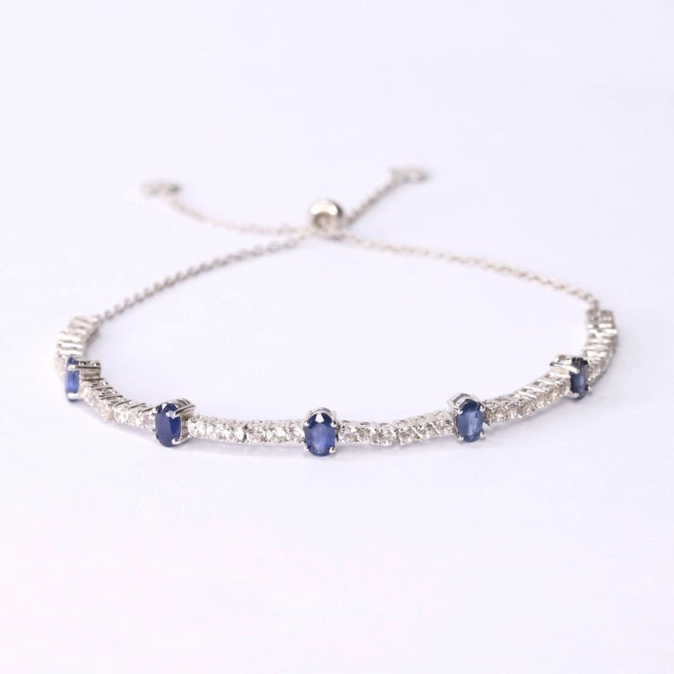 Elegance Redefined with a Touch of Birthstone Magic: Introducing our Bolo Tennis Bracelet, a stunning creation in 925 Sterling Silver, weighing 4.10 grams. At the heart of this exquisite piece is Genuine Blue Sapphires, each oval-shaped and collectively weighing 1.1 ct. The deep blue hue of the Sapphires, the birthstone of September, symbolizes wisdom, virtue, and good fortune, making this bracelet not just a statement of style but also of meaningful symbolism. Craftsmanship and Timeless Design: This Bolo Tennis bracelet, crafted with the utmost precision in Sterling Silver, is a testament to enduring elegance. The weight and quality of the metal ensure both durability and comfort, making it suitable for everyday wear or special occasions.