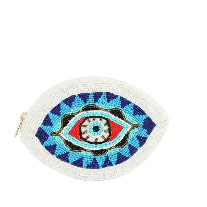 Ladies White Fully Beaded Eye Shaped Coin Purse