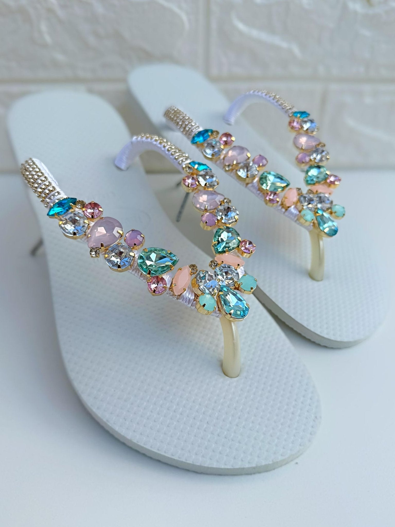 Luxury flip flops with pastel stones