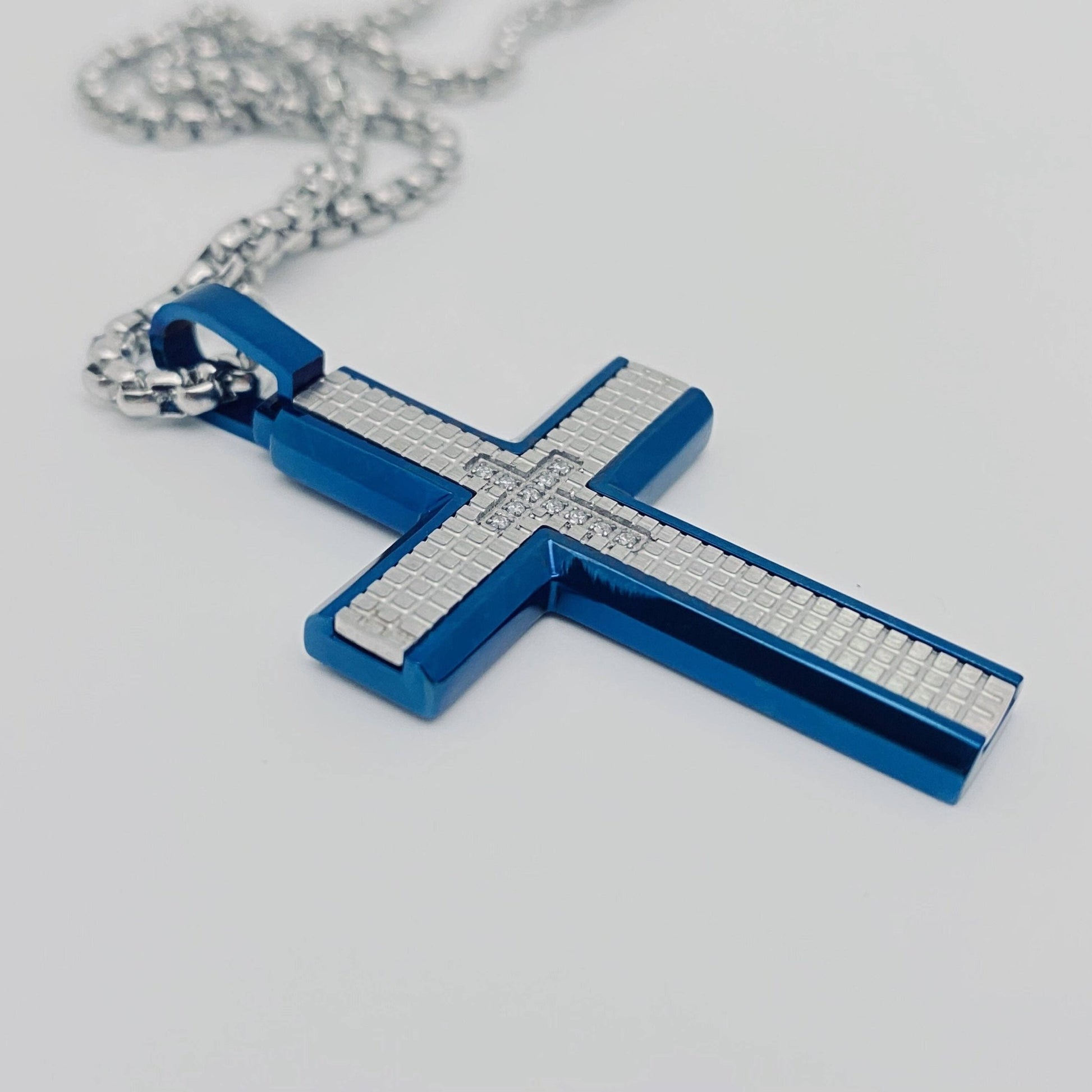Stainless Steel CZ Cross Pendant Men's Necklace - MJ/MNP