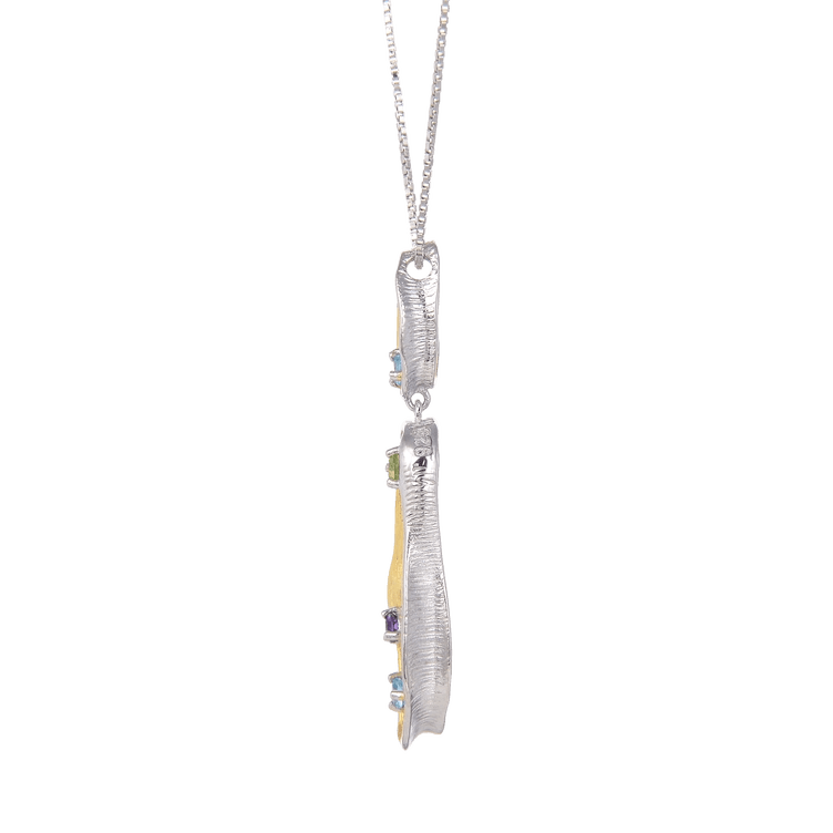 This eye-catching pendant is Rhodium and Gold-plated, paired with Blue Topaz, Peridot and Amethyst gemstones. The charming style of the design is complimented by the various colors which beautifully compose the piece. Jewelry Care Tips: When caring for your new piece of jewelry use a soft cloth for gentle polishing, and avoid chemicals which could disrupt the shine of the piece. Store in a cool, dry, fabric lined box when not in use. Avoid rough conditions and wear regularly to prevent tarnish and maintain the shine of your beautiful new piece! Metal - Sterling Silver Gold Plated, Rhodium Plated Metal Weight - 4.30gms. Main Stone - Swiss Blue Topaz, Peridot, Amethyst Main Stone Shape - Round Main Stone Color - Blue, Green, Purple Main Stone Weight - 0.11ct. Fine Color Jewels Magical Forest Collection | Round Amethyst Peridot and Blue Topaz Pendant Necklace for Women | 925 Sterling Silver Pendant Necklace | Beautiful Gift for Her